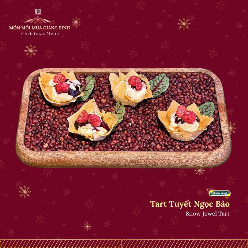 Những chiếc bánh nhỏ xinh với lớp vỏ giòn rụm, nhân mềm mịn, hòa quyện cùng trái cây, hạt và sốt ngọt thanh. Mỗi chiếc bánh như một “viên ngọc mùa đông” lấp lánh, tinh tế và trọn vẹn – một kết thúc ngọt ngào, đọng lại những dư vị nhẹ nhàng cho bữa tiệc Giáng Sinh đầy cảm xúc.