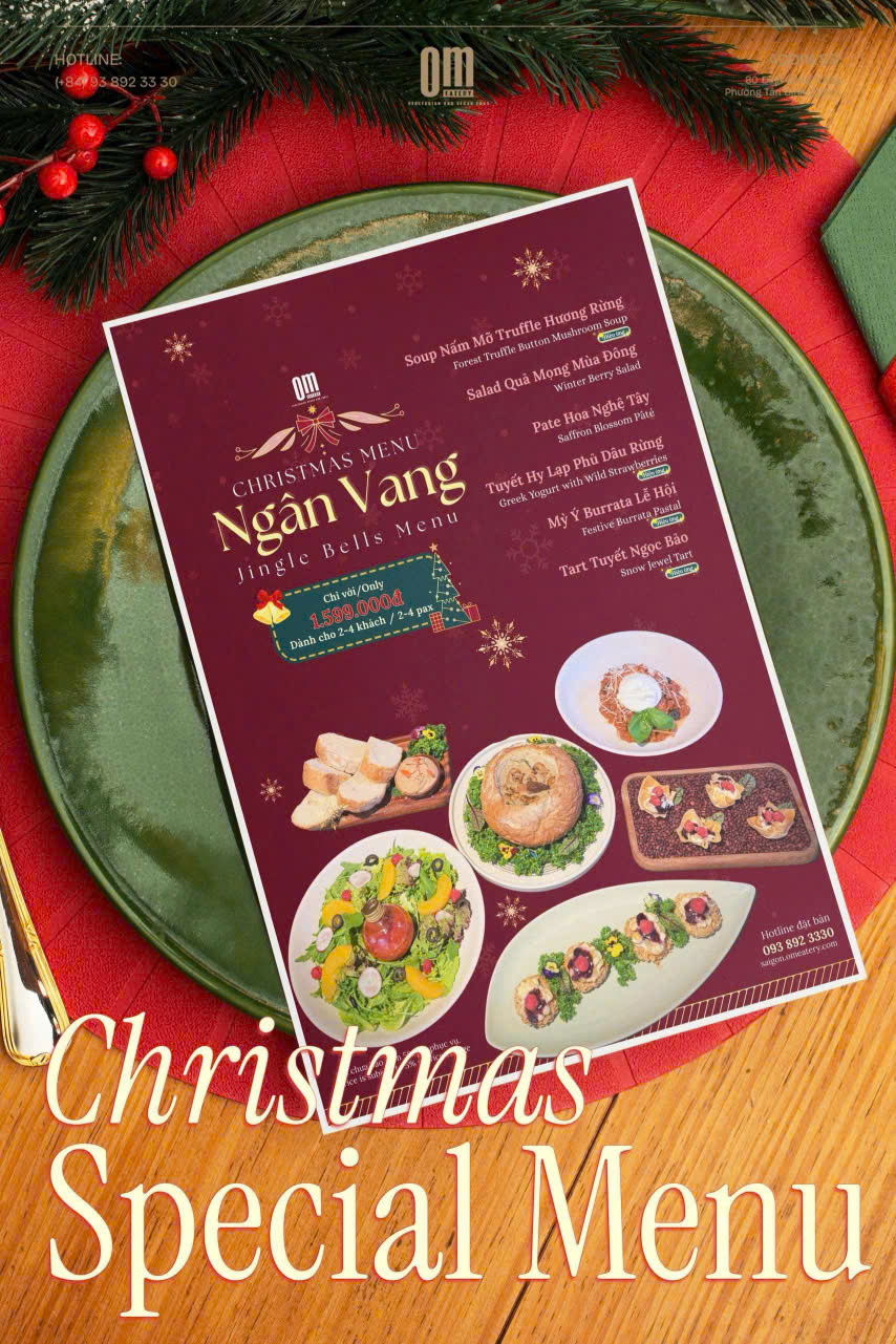Giáng Sinh về mang theo sắc đỏ ấm áp, ánh đèn lấp lánh và những giai điệu quen thuộc vang lên khắp phố. Đó không chỉ là mùa của lễ hội, mà còn là khoảnh khắc để mỗi người chậm lại, quây quần bên những người thân yêu, cùng sẻ chia những bữa ăn trọn vẹn yêu thương. OM Eatery trân trọng giới thiệu “Ngân Vang – Jingle Bells Menu” – Set Menu Giáng Sinh đặc biệt, được sáng tạo dành riêng cho mùa lễ hội cuối năm, nơi hương vị và cảm xúc cùng hòa nhịp.