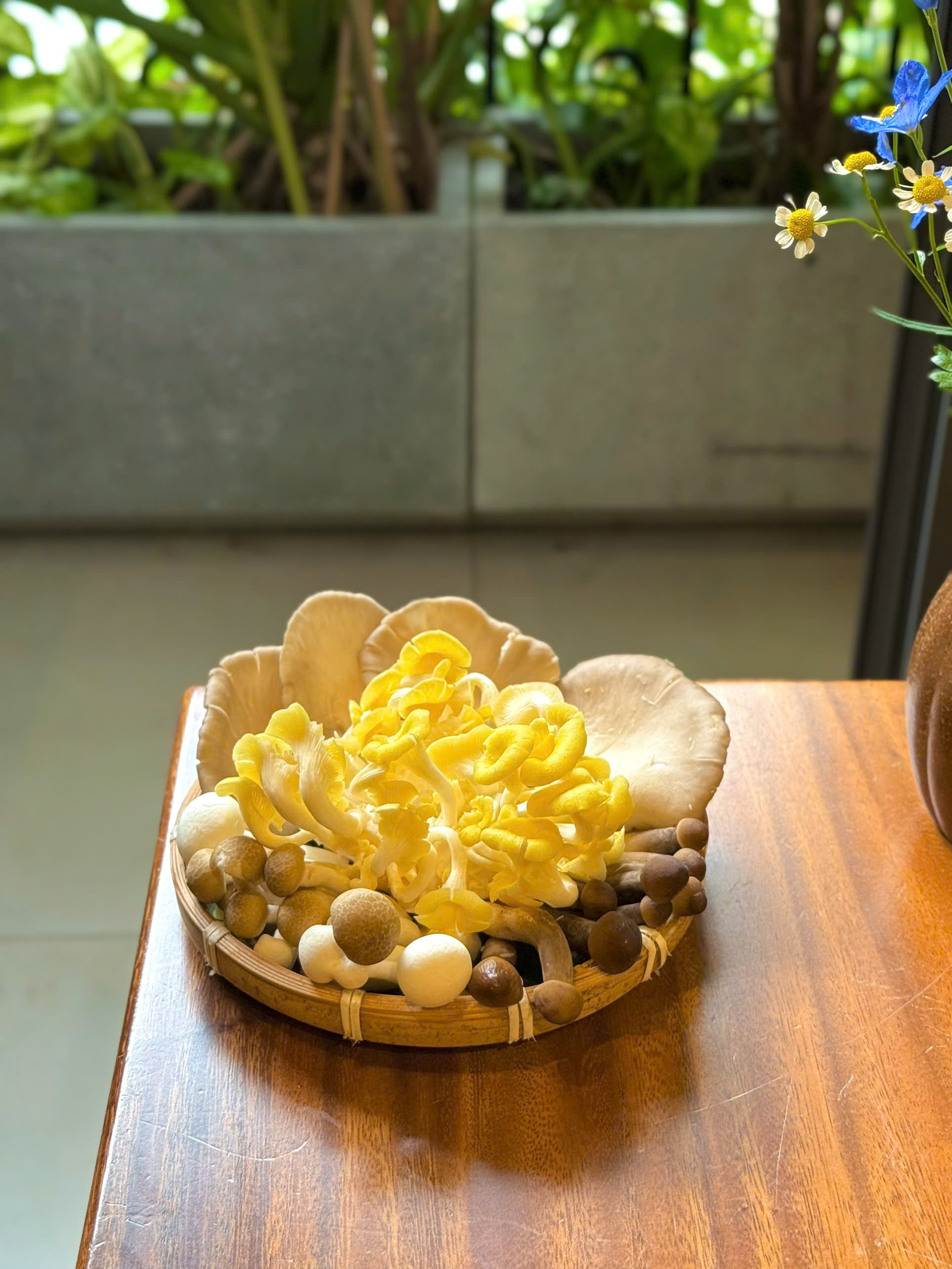 Mẹt nấm được chuẩn bị riêng cho thực khách dùng lẩu tại OM Eatery là sự kết hợp hài hòa của nhiều loại nấm tươi, được lựa chọn kỹ lưỡng mỗi ngày để đảm bảo độ tươi, giòn và vị ngọt tự nhiên.